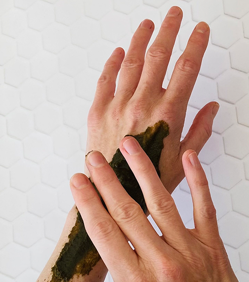 - After 15 minutes wash out with Aalgo Seaweed Shampoo bar – wash and rinse twice.